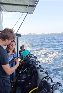 After a short briefing about the boat, we had time to relax a bit. This is the first time, i’m on a boat that was super crowded. You can had to move from behind at times because the way was blocked. There were fun divers, divers doing their certification, DSD, bubble maker divers …. Met a lot of people…